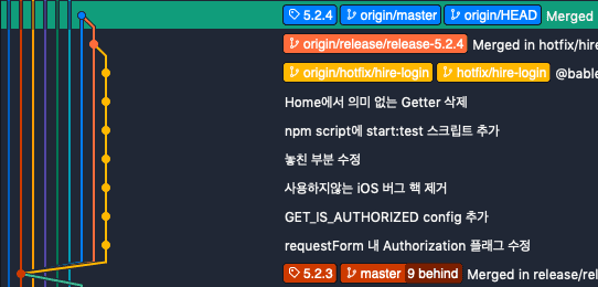 위의 그래프 상에서 어플리케이션의 현재 상태는 어떤 커밋일까?
