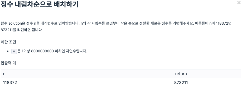 처음 받은 숫자를 배열없이 내림차순으로 변경하는 방법이 있을지는 모르겠지만 지금은 아는게 없으므로