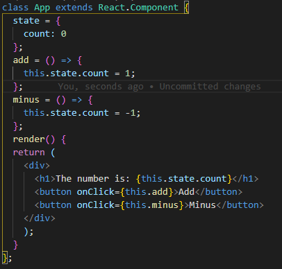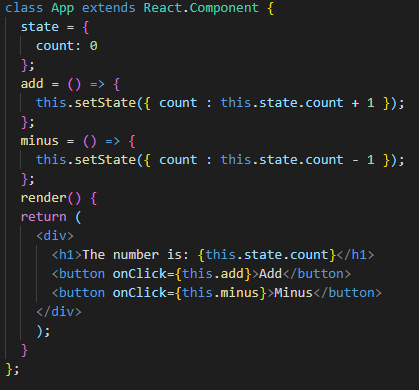 minus를 쓰고 싶을 땐, this.state.count = -1