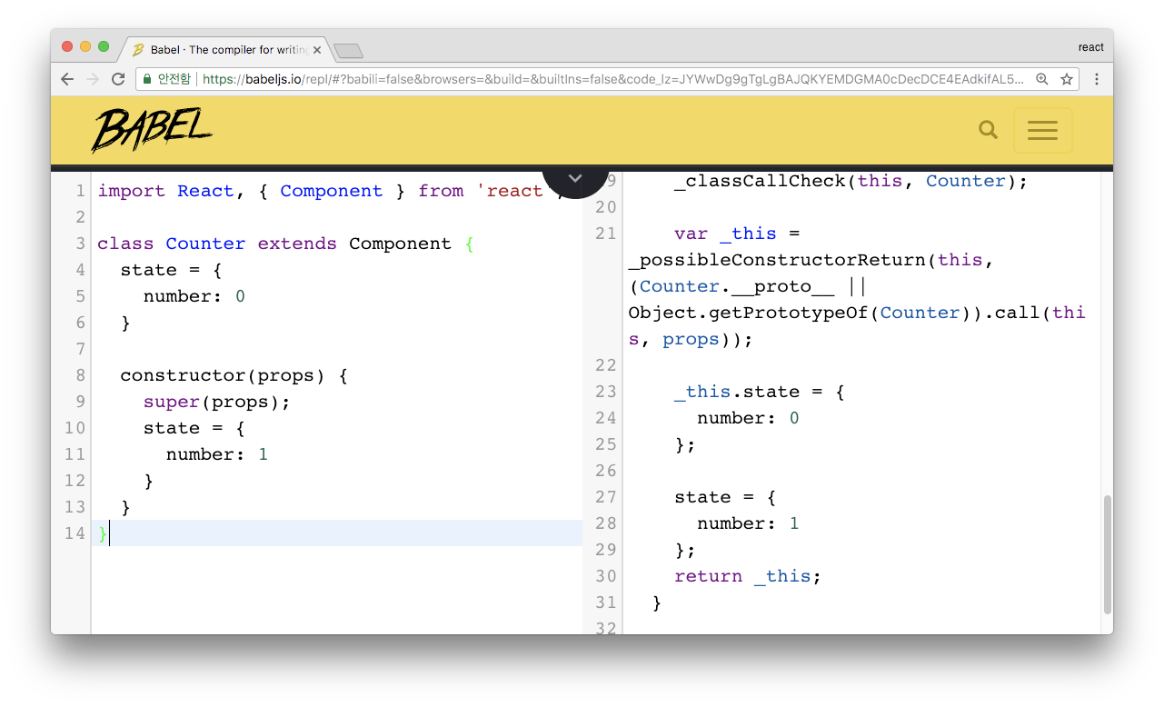 만약 class fields 문법을 사용하지 않는다면 이렇게 돼!