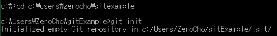 이제 명령 프롬프트로 자신의 프로젝트 폴더 위치로 이동합니다. cd [경로] 명령어를 사용하면 됩니다. 그리고 git init을 쳐봅시다. Initialized empty Git repository in [경로] 이렇게 한 줄이 나오고, 프로젝트 폴더 안에 .git이라는 숨겨진 폴더가 생성되었습니다. 만약 폴더가 안 보인다면, 보기에서 숨겨진 파일 보기를 체크하세요.