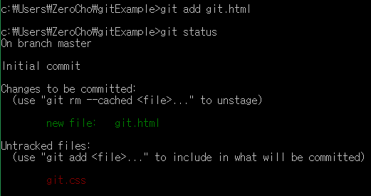 git add git.html을 하고 다시 git status를 해봅시다.