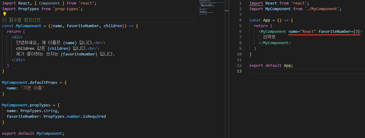 예를 들어 App 컴포넌트에서 MyComponent를 사용할 때 props를 바꿔줘야 값이 변경될 수 있지!